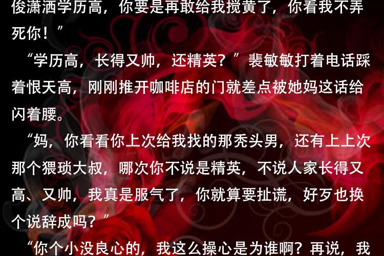 她裴敏敏是何许人也,尚优集团唯一的继承人——裴女王。   女王能屈能伸,这点脸她还是拉的下来的,为了她的宏图大业,这点委屈她还是愿意受得。   况且她也没有什么可委屈的,确实是她办事不利,才出此事端,就这么把好不容易得来的机会付之一炬,她实在是不甘心。   裴敏敏还在垂死挣扎,道:“陈教授,你难道没有犯过错误吗?就不能给年轻人一个机会吗?”   陈熠言被她拖着不能前行,冷声道:“没犯过这么低级的错误!”   裴敏敏装孙子已经装到了极限,她裴家大小姐何时受过这种气,顿时也怒了。   说道:“不就是拿错了资料吗?有什么大不了的,多大点事啊,不是也没有发生任何后果吗?你不也讲下来了吗?”   陈熠言第一次见到犯了错误还这么理直气壮的,真是开眼。   他想一把甩开裴敏敏紧紧拽着他的胳膊,但裴敏敏实在像个狗皮膏药一样粘他粘的太紧了。   “放开!”陈熠言道。   他眼中的目光已经降到了冰点,熟悉的人都知道这是个十分危险的讯号。   但偏偏遇到了裴敏敏这么无知无畏不怕死的主,她就是这么拽着不松手。   裴敏敏知道如果今天让陈熠言走出这个大门了,她的复仇计划基本算是失败了。