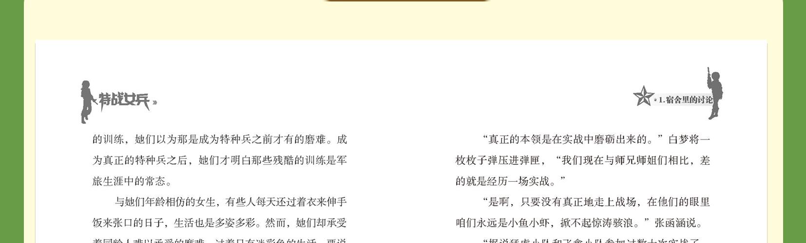 特种兵学校的训练场上,一队女兵整齐站立。在她们的面前站着一位留着干练短发的女中尉。中尉叫关悦,是特种兵学校的教官,而这一队女兵则是她要训练的新兵。 说起关悦,可不是简单的人物。她曾是中国第一批少年特种兵的成员,不仅特战技能出众,还是数学天才、情报专家。 九月,虽然已不是一年中最热的月份,但夏天的尾巴还没过,气温依旧很高。这一队女兵站在烈日下,汗水顺着面颊流下,却一动也不能动。 关悦教官从女兵们的面前走过,转到她们身后。她看到草地上有一条毛茸茸的虫子,顺手将其捡起。从排头看到排尾,又从排尾看到排头,最终关悦教官把这条虫子放到了排头女兵的脖颈上……