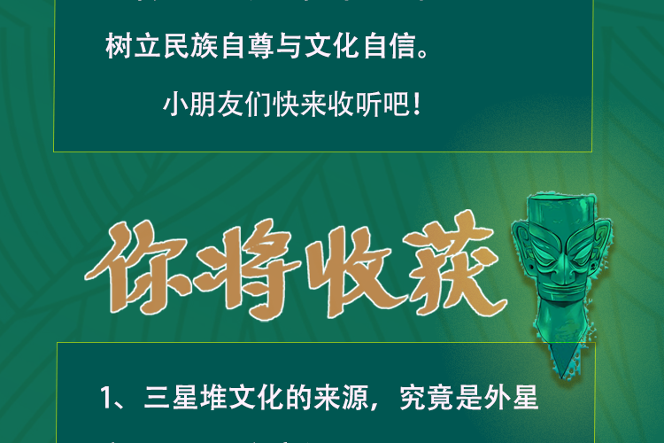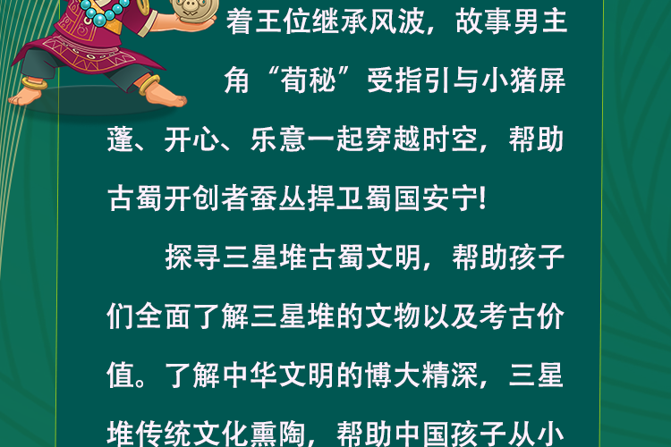 《三星堆寻梦记》,探寻三星堆古蜀文明,帮助孩子们了解三星堆的文物及考古价值。了解中华文明的博大精深,三星对传统文化熏陶,帮助中国孩子从小树立民族自尊与文化自信。