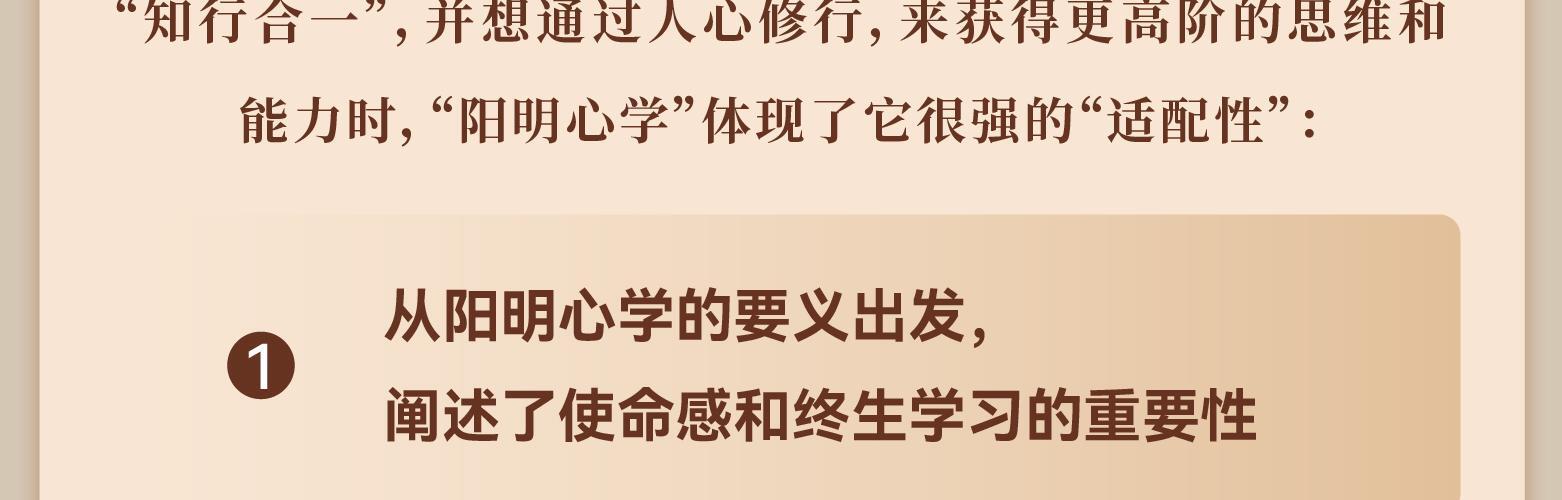 当我们在思考如何在精神上不受力,在生活和职场中践行“知行合一”,并想通过人心修行,来获得更高阶的思维和能力时,“阳明心学”体现了它很强的“适配性”。通过学习这门课,你可以: 1.从阳明心学的要义出发,阐述了使命感和终生学习的重要性 2.从王阳明的传奇一生,传递给我们做人、做事的力量 3.从阳明心学的思想源流中,帮助我们找到生命的原动力