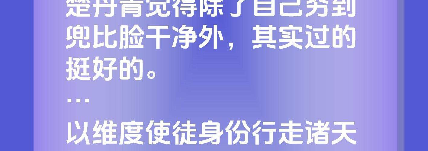 “维度乐园宽容且慷慨,惩罚温柔似水,抹杀和强制处决更是少有出现。” “可坏消息是敌对竞争阵营里,全是挣扎在死亡边缘的高压疯子。” “作为召唤系的我,砸锅卖铁的养几个大爹护身也是合情合理的。” 楚丹青觉得除了自己穷到兜比脸干净外,其实过的挺好的。 … 以维度使徒身份行走诸天万界,他见那深窟之中洞兽蛰伏,以人为祀。 也见水河潜蛟,山中邅迹虎,世间人心魔为祸。 更有人心不足蛇吞象,世事到头螳捕蝉。 万千诸界里魑魅魍魉,百态红尘中善恶纷纭。