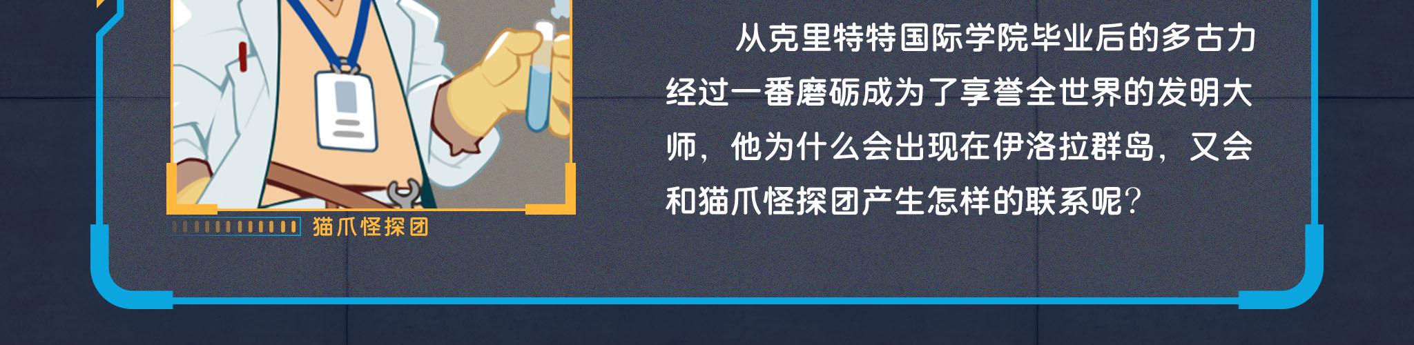 什么是怪探? 他们隐藏起自己的真实身份,乔装打扮,模仿各种动物他们使用千奇百怪的发明,让人目不暇接他们来无影、去无踪——在法律和制度并不完善的伊洛拉群岛,这群奇怪的侦探们组成“猫爪怪探团”来帮助那些居民们。而从那个时候起,他们就被卷入了一场惊天的阴谋当中……