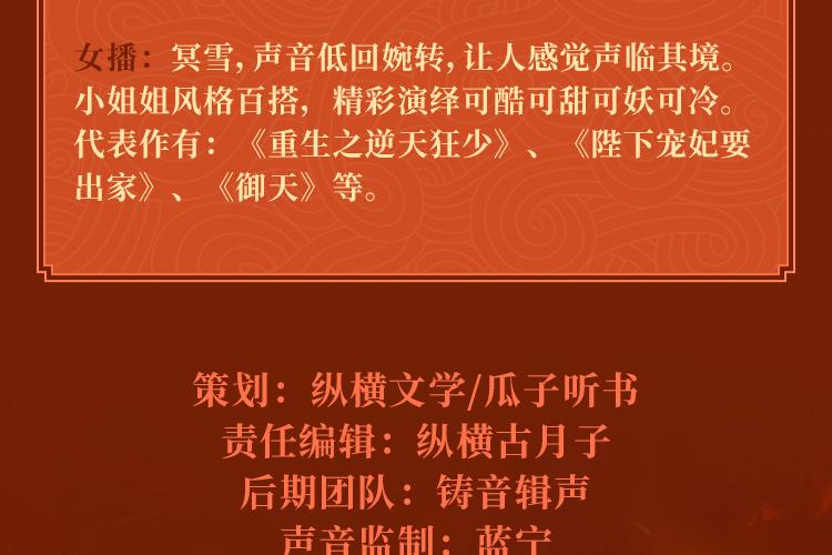 瓜子嘚啵嘚,实力主播,代表作《闪婚萌妻慢慢宠》,《神级奶爸》等。