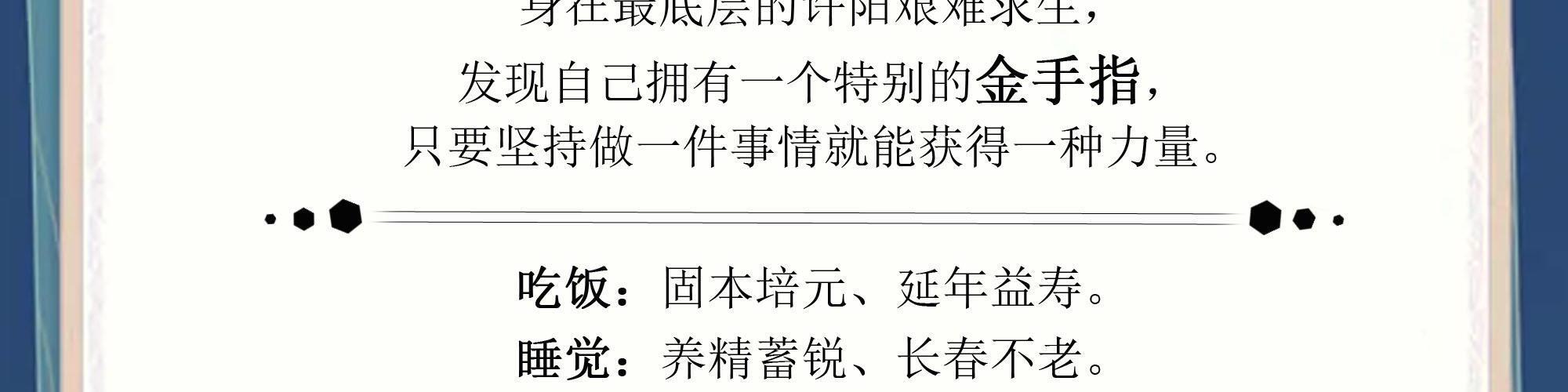 诸天文,两界文,次修仙 穿越修仙界,身在最底层,艰难求生的许阳,发现自己拥有一个特别的金手指,只要坚持做一件事情,就能获得化腐朽为神奇的力量。 吃饭:固本培元,强身健体,延年益寿…… 睡觉:养生蓄锐,龙精虎猛,长春不老…… 呼吸:龟息吐纳,心血如潮,气动山河…… 走路:日行千里,缩地成寸,担山赶月…… 无论凡俗种种,还是修真百艺,只要持之以恒,就能极尽升华。 凭此,许阳从一个小小的渔夫开始,成为史上最强的十里坡剑神!