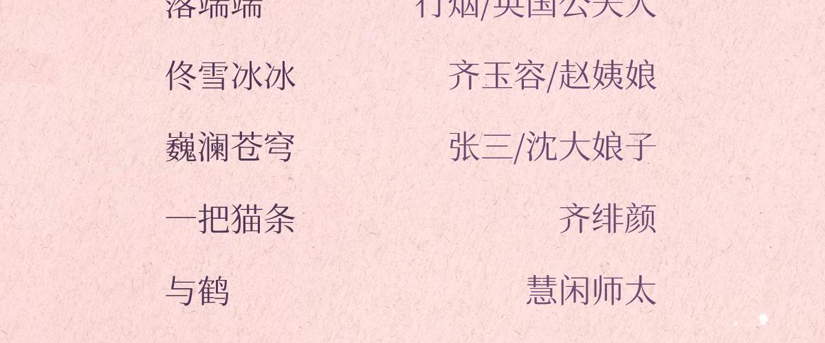 配音演员:影视作品《风起洛阳》《苍兰诀》《显微镜下的大明》《光荣与梦想》《夺冠》《冰糖炖雪梨》等 有声:《似锦》《韶光慢》《一品仵作》《玉无香》《逢春》等