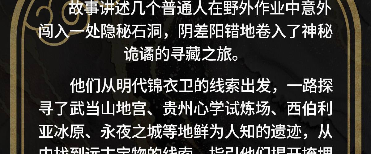故事讲述几个普通人在野外作业中意外闯入处隐秘石洞,阴差阳错地卷入了神秘诡谲的寻藏之旅。