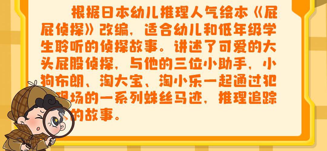 内容简介】《屁屁大侦探》第4季来啦!根据田中阳子和深泽讲秀创作的日本推理人气绘本《屁屁侦探》改编,适合幼儿和低年级学生聆听的侦探故事。