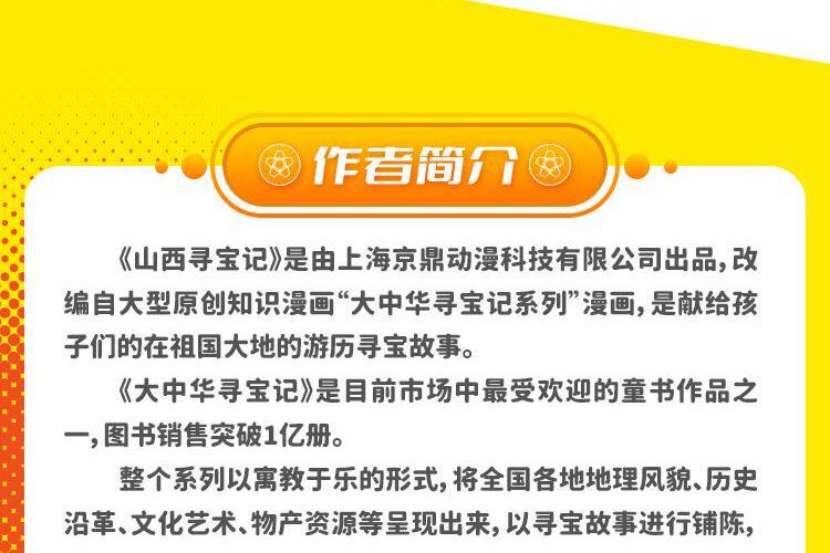 《大中华寻宝记》系列创作公司为上海京鼎动漫科技有限公司,是国内顶尖动漫内容创作公司,被国家文化部评为国家动漫企业,旗下内容品牌包括“漫画中国”系列、《大中华寻宝记》系列、《植物大战僵尸》、《熊出没》等耳熟能详的一线动漫作品。
