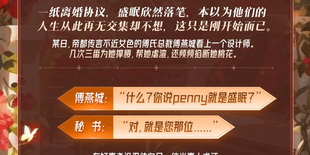 结婚三年的老公连她是谁都不知道,没想到两人第一次会面竟然在床上。 傅燕城:“想要多少?” 盛眠:“我不是为了钱。” 一纸离婚协议,盛眠欣然落笔,本以为他们的人生从此再无交集,却不想,这只是刚开始而已。 某日,帝都传言不近女色的傅氏总裁傅燕城看上一个设计师。 几次三番为她撑腰,帮她虐渣,还频频掐断她桃花。 傅燕城:”什么?你说penny就是盛眠?“ 秘书:”对,就是您那位......“ 有好事者没忍住向另一位当事人求证: “请问你和傅先生到底是什么关系?” 盛眠微笑着:“除了雇主与打工人外,也就... ..前夫和前妻吧。”