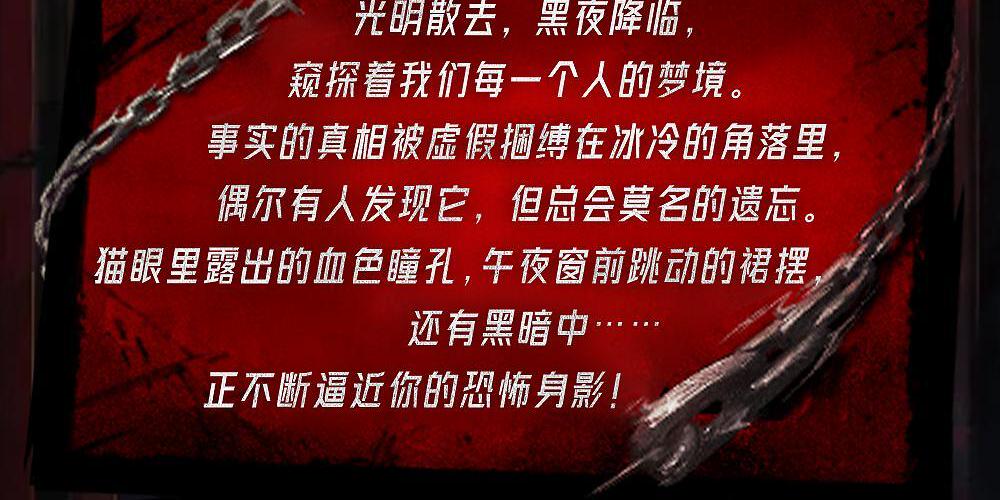 光明散去,黑夜降临,窥探着我们每一个人的梦境。 事实的真相被虚假捆缚在冰冷的角落里,偶尔有人发现它,但总会莫名的遗忘。 猫眼里露出的血色瞳孔,午夜窗前跳动的裙摆,还有黑暗中……正不断逼近你的恐怖身影!