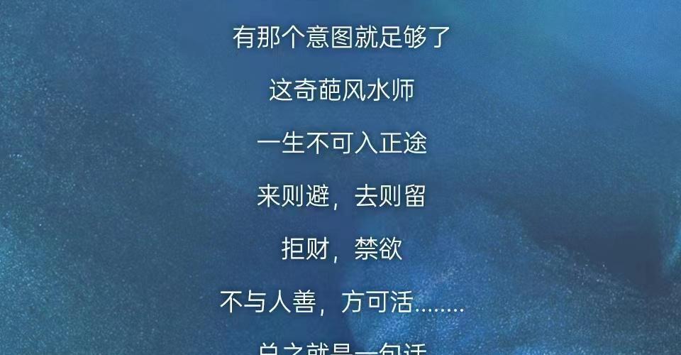 落英市的街头出现了一对奇怪的乞丐组合,一老一少,老的没事只顾睡觉,小的则是又会哭又会说‘甜话’,总能讨要些零钱或者零食。 老乞丐对乞儿说,这辈子你如果干哪怕一件正当的事,那也是对不起我。 乞儿不是善良之辈,从来都不是。 受到十分的攻击,最少也会十分还回去,至于对方得没得手他却不管,有那个意图就足够了。 这奇葩风水师,一生不可入正途,来则避,去则留。 拒财,禁欲,不与人善,方可活........ 总之就是一句话,他是一个不能做好事的风水师。 圣母?不存在的!一切随他的意才行