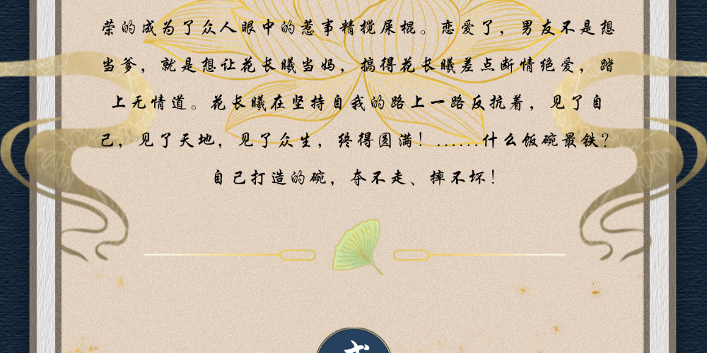 花长曦穿越到了正在‘灵气复苏’的大晋王朝,偶得修炼机会的她,只想努力提升自己,过上随心所欲自由自在的幸福日子。 只是,人是群居动物,生活在群体中,难免要受到来自他人的期待、凝视、约束、评判...家中长辈,期待花长曦无偿为家里奉献自己的一切,好振兴家族,花长曦不干,奋起反抗,成了忤逆的女儿。 工作中,上司只想工具化花长曦,让她抗雷顶包,花长曦肯定是要反抗的,于是,光荣的成为了众人眼中的惹事精搅屎棍。 恋爱了,男友不是想当爹,就是想让花长曦当妈,搞得花长曦差点断情绝爱,踏上无情道。 花长曦在坚持自我的路上一路反抗着,见了自己,见了天地,见了众生,终得圆满! 什么饭碗最铁?自己打造的碗,夺不走、摔不坏!