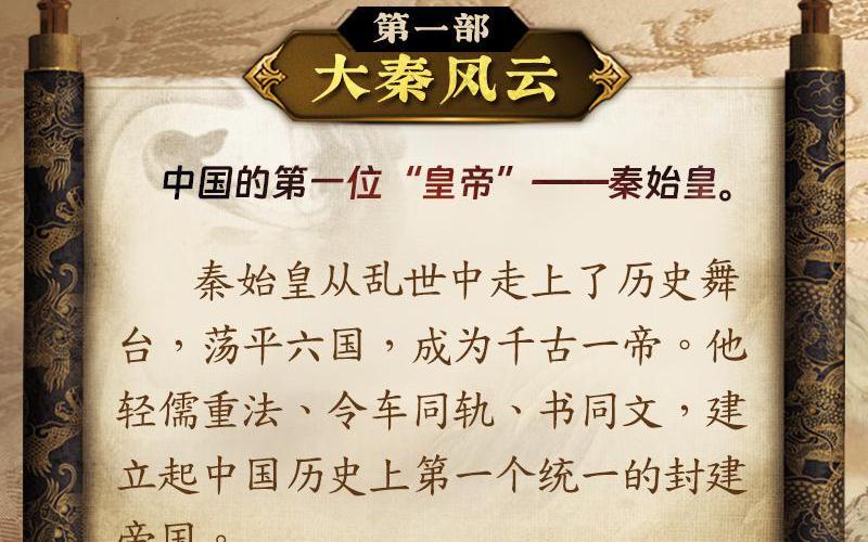 【历史不是僵尸作品,一听就上头的中国历史】源自正史,轻松述说有血有肉,映照现实。封建帝制的开创者秦始皇,有着复杂的出身背景以及动荡的童年,但是依然从乱世中坚定地走上了历史舞台,并成为他所处时代的主角,荡平六国,成为千古一帝。他轻儒重法,快速建立了统一的帝国规制;他泰山封禅,信方士求仙丹,修长城,建阿房,霸道而强势,轰轰烈烈地建立起中国历史上第一个统一的封建帝国。 打江山容易,守江山难。秦朝后期,官逼民反,陈胜吴广揭竿而起,刘备项羽蓄势待发,秦始皇逝去,新的一个朝代即将上场。 秦始皇荡平六国,建立了第一个中央集权制的封建王朝,开创了中国历史大一统的局面,这其中,有很多重要的人物和事件成为推动历史向前的关键,比如,吕不韦、李斯、陈胜、吴广、刘邦、项羽等人物,以及始皇出巡、大泽乡起义等事件。 用通俗易懂的语言,将秦朝从建立、发展到分崩离析的重要节点进行了故事性地介绍,并以史为鉴,将历史照进现实。从而让我们能够轻松地抓住历史的主要脉络,愉悦地体验历史故事,建立正确的历史观,过好当下的生活。
