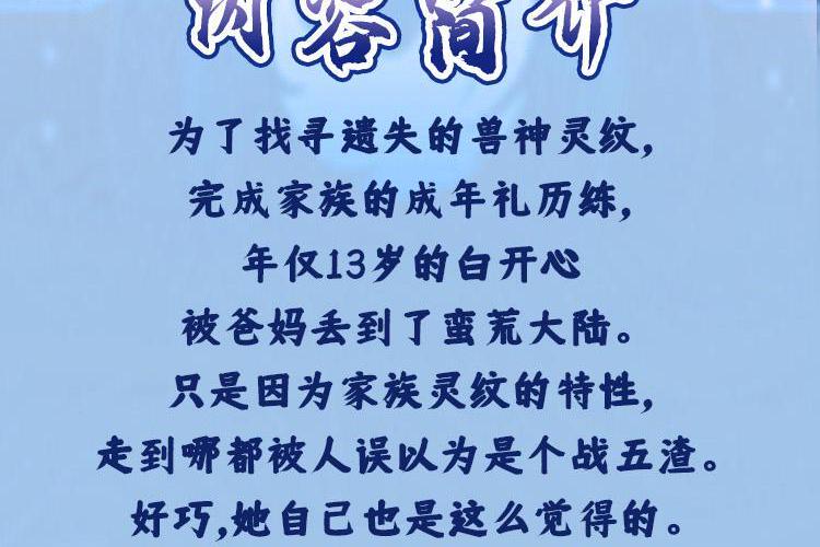 为了找寻遗失的兽神灵纹,完成家族的成年礼历练,年仅13岁的白开心被爸妈丢到了蛮荒大陆。 只是因为家族灵纹的特性,走到哪都被人误以为是个战五渣。好巧,她自己也是这么觉得的。 毕竟,这里不仅有一口能吞下5个她的巨大蛮兽,还有十分可怕的天气和大虫子! 大雪、大雨和大冰雹! 大蚊子、大蟑螂和大毛毛虫! 全部都辣么辣么大! 她吃也吃不饱,吃也吃不好。甚至还有可能被抓去小黑屋打苦工! 呜呜呜!外面的世界真是太危险了! 这么冰冷可怕的世界,也只有手里的大鸡腿还有点温度。 什么?你说她刚刚一拳打断了千年老树? 现在手里烤的大鸡腿还是蛮兽王的? 真是搞不懂你在说什么! 反正来都来了,还是先吃饭再说吧!