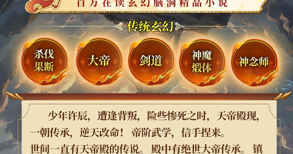 【传统玄幻:杀伐果断+大帝+剑道+神魔煅体+神念师……】少年许辰,遭逢背叛,险些惨死之时,天帝殿现,一朝传承,逆天改命!帝阶武学,信手捏来。世间一直有天帝殿的传说。殿中有绝世大帝传承。 镇古绝今的噬天大帝。《吞噬帝诀》,噬天噬地噬万物,练至大成,连大道都可吞噬。战天斗地的战天大帝。 《战天诀》,天战斗地,盖世无敌,练到大成,战力提升256倍,拳破寰宇,弹指灭星辰。