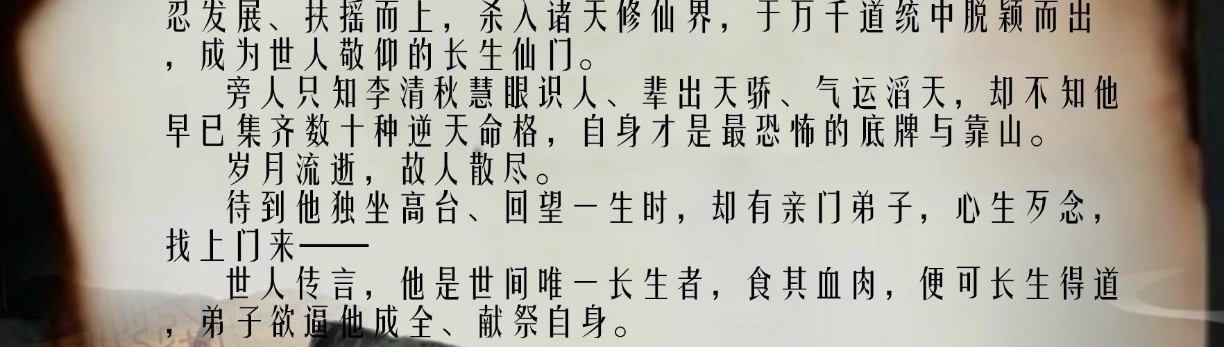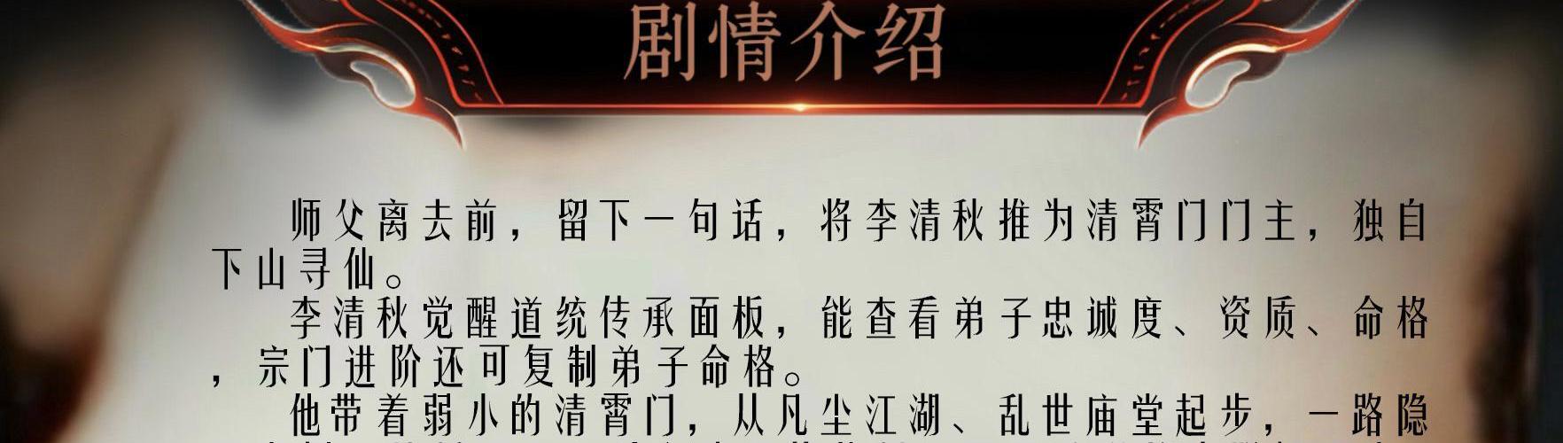 “从今日起,你便是清霄门门主!” 师父留下这句话后,就抛弃李清秋与师弟、师妹们下山,独自寻仙去。 也就是这一日,李清秋开启道统传承,他可以通过道统面板查看弟子的忠诚度、资质、命格,当清霄门的发展每上一个台阶时,他还能复制门中弟子的命格。 从武林起势,于红尘中修仙。 江湖草莽如过江之鲫,快意恩仇,庙堂权贵苦求仙道,草菅人命,在动荡岁月里,李清秋带领清霄门一步步往上爬,超脱世俗。 诸天修仙界,道统林立,万千道门争上流,清霄门从凡尘而来,成为苍生心中的长生仙门。 修仙界只知李清秋有识人之能,总能培养出一代代天骄为清霄门争夺气运,殊不知拥有【人间鬼神】、【不灭霸体】、【仙祖气运】、【七色神光】、【自在御灵】、【太上五灵根】等诸多命格的李清秋才是清霄仙门最恐怖的存在。 岁月长逝,故人已成云烟,当李清秋独坐道台回忆往昔时,一名弟子找上门来。 “师父,世人皆说您是世间唯一的长生者,只要炼化您的血肉之躯,即可长生得道,不如您成全我吧?”