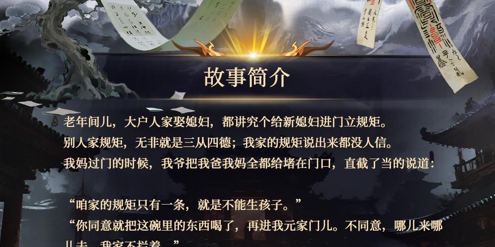 苗棋淼著 老年间儿,大户人家娶媳妇,都讲究个给新媳妇进门立规矩。别人家规矩,无非就是三从四德;我家的规矩说出来都没人信。,我爷直截了当的说道:咱家的规矩只有一条,就是不能Y孩子。