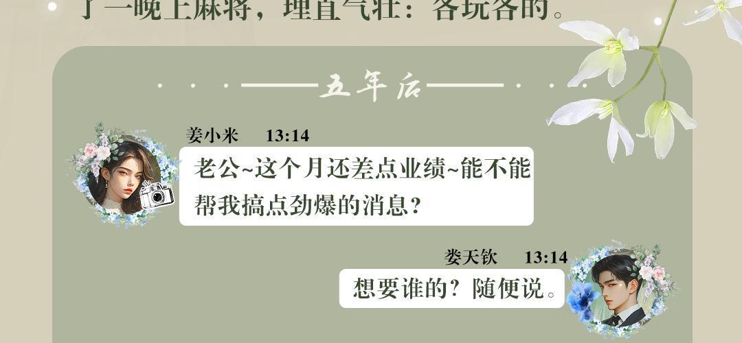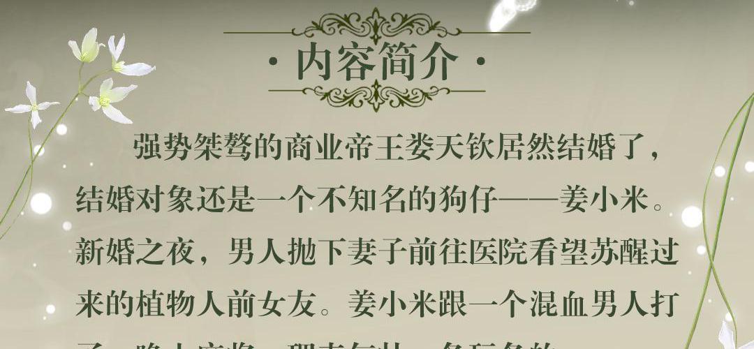 【现言甜宠+豪门总裁+腹黑娄天钦VS狗仔姜小米】 强势桀骜的商业帝王娄天钦居然结婚了,结婚对象还是一个不知名的狗仔。五年后,姜小米偎依在男人怀里:"老公,这个月还差点业绩,能不能帮我搞点劲爆的消息?"想要谁的?随便说。"某日,商业大佬咆哮:娄天钦,你老婆污蔑我是渣男,我现在就要起诉她。某男气定神闲:别起诉了,消息是我给的。商业大佬愕然:为什么?娄爷:帮老婆冲业绩。