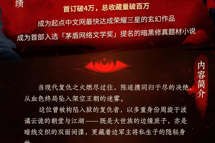 当现代的复仇之火燃尽过往,陈迹携同归于尽的决绝,从血色终局坠入架空王朝的迷雾。 这位曾被构陷入狱的复仇者,以多重身份周旋于拨云诡谲的朝堂和江湖——既是大世族边缘庶子,亦是暗线交织的双面间谍,更藏着边军主将私生子的隐秘身世。