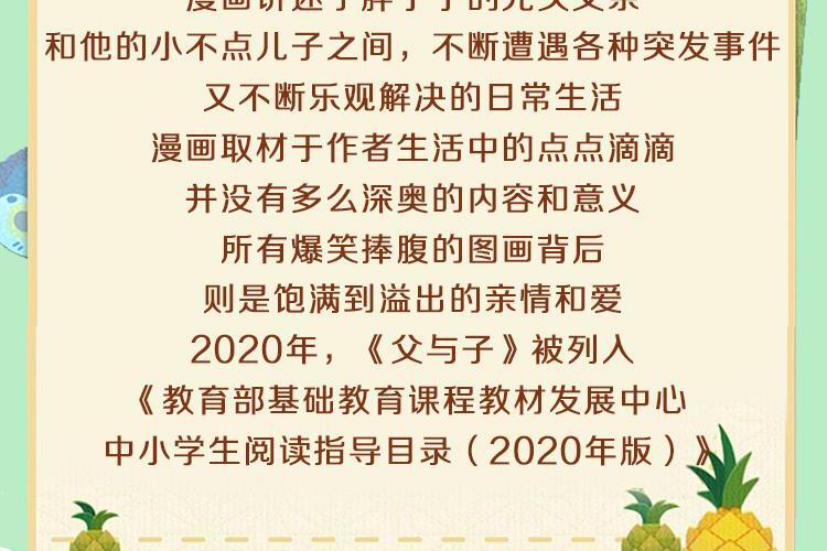 漫画取材于作者生活中的点点滴滴,并没有多么深奥的内容和意义,所有爆笑捧腹的图画背后,则是饱满到溢出的亲情和爱。2020年,《父与子》被列入《教育部基础教育课程教材发展中心 中小学生阅读指导目录(2020年版)》