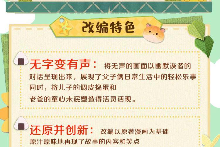 漫画讲述了胖乎乎的光头父亲和他的小不点儿子之间,不断遭遇各种突发事件又不断乐观解决的日常生活。