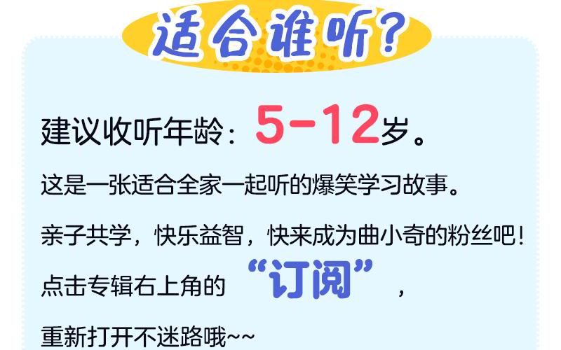 这是有智慧的笑话,笑声中藏着迷人的“知识”! 这是有质量的笑话,都长在小学生的笑点上。 这是有态度的笑话,引导孩子乐观向上看世界。 校园里的生活糗事,孩子们秒懂的知识笑梗 3分钟快乐陪伴,跟曲小奇做同学,一起爆笑成长吧!