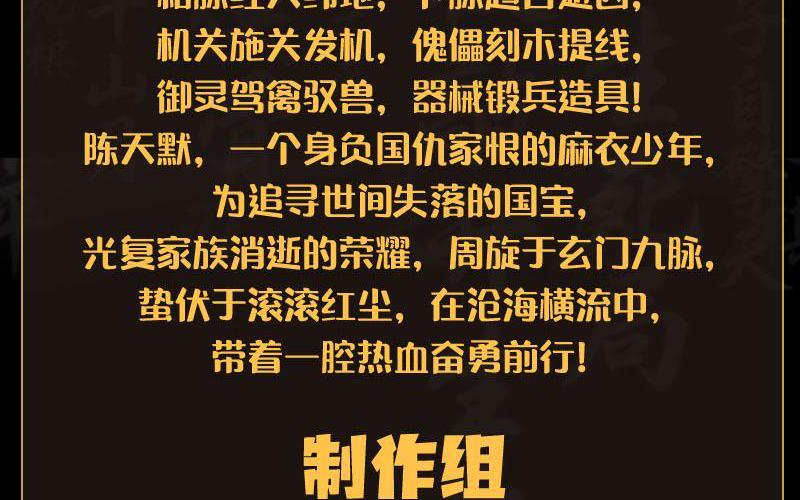 陈天默,一个身负国仇家恨的麻衣少年,为追寻世间失落的国宝,光复家族消逝的荣耀,周旋于玄门九脉,蛰伏于滚滚红尘,在沧海横流中,带着一腔热血奋勇前行!