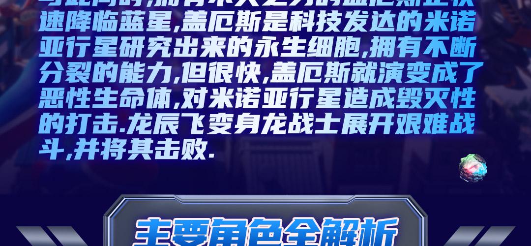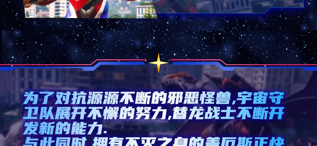 为了对抗源源不断的邪恶怪兽,宇宙守卫队展开不懈的努力,替龙战士不断开发新的能力。 与此同时,拥有不灭之身的盖厄斯正快速降临蓝星,盖厄斯是科技发达的米诺亚行星研究出来的永生细胞,拥有不断分裂的能力,但很快,盖厄斯就演变成了恶性生命体,对米诺亚行星造成毁灭性的打击。龙辰飞变身的龙战士星源展开艰难战斗,他能打到一切恶势力,守护蓝星吗?