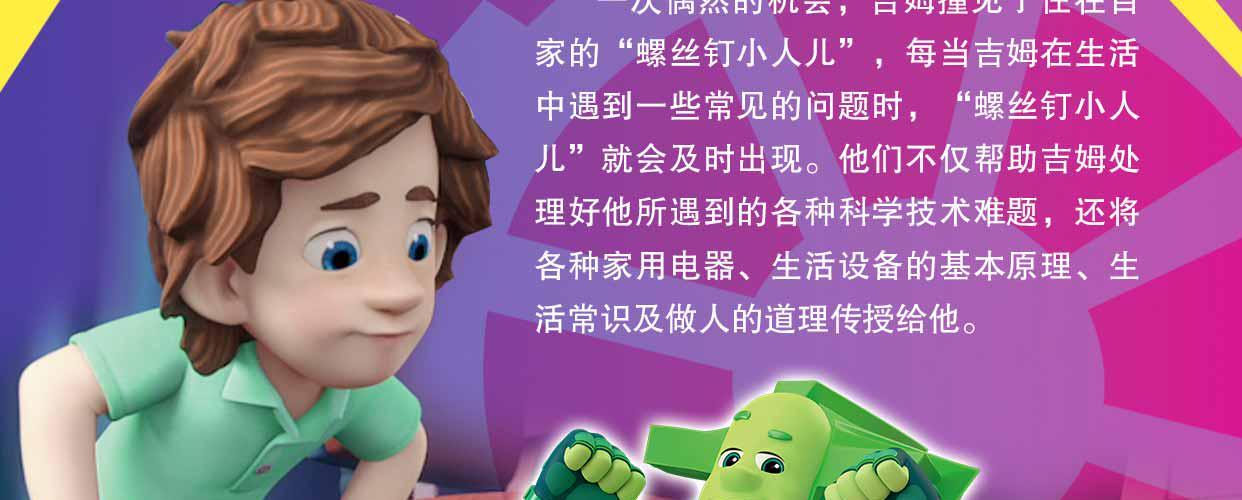 "螺丝钉"科学启蒙故事来源于全球知名科普动画《螺丝钉》。 一次偶然的机会,吉姆认识了螺丝钉家族,每当吉姆遇到技术问题时,螺丝钉家族就会出现,帮助他解决难题并传授各种电器原理和生活常识。