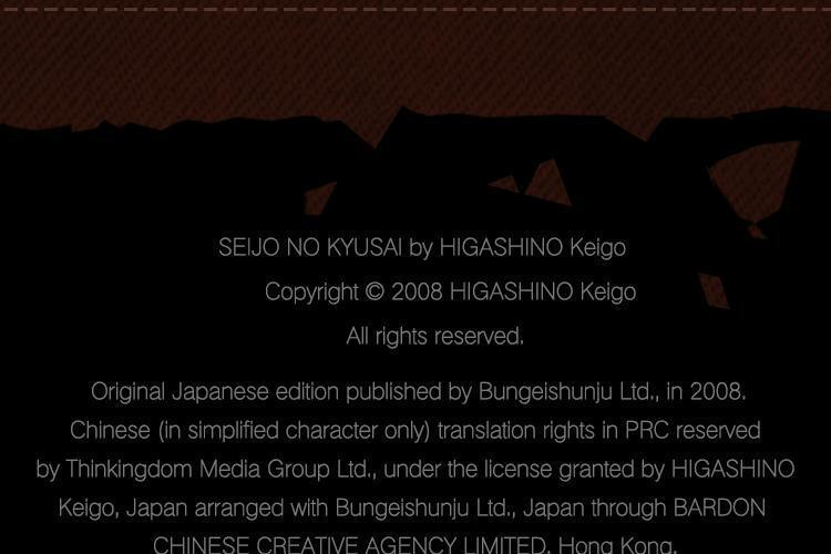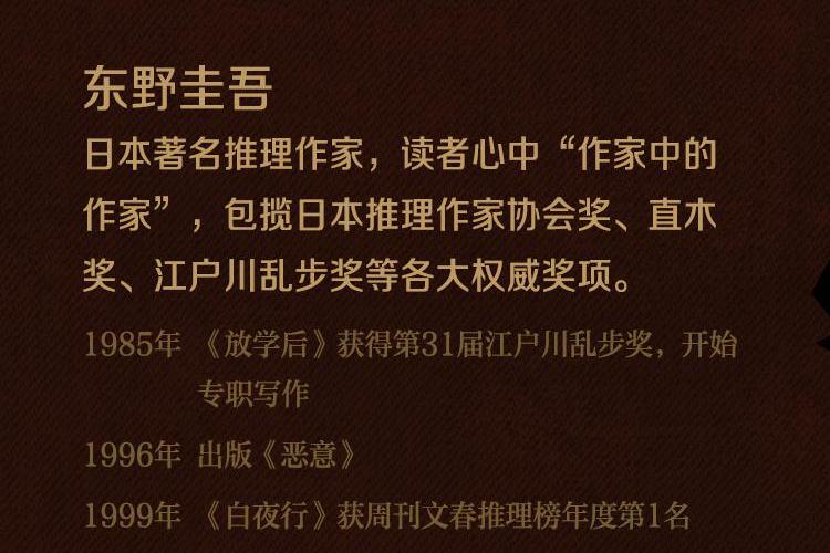加小野VX:dykw580204,进入东野圭吾官方粉丝群,一起听书、揭秘! 东京一位社长于家中中毒暴毙 毫无自杀理由,也找不到任何他杀的证据 汤川学+草薙俊平的王牌组合也难破解 这绝望冷酷的案件背后 到底有一个怎样不可言说的故事?