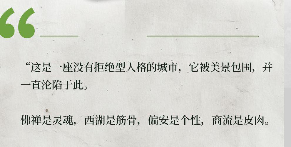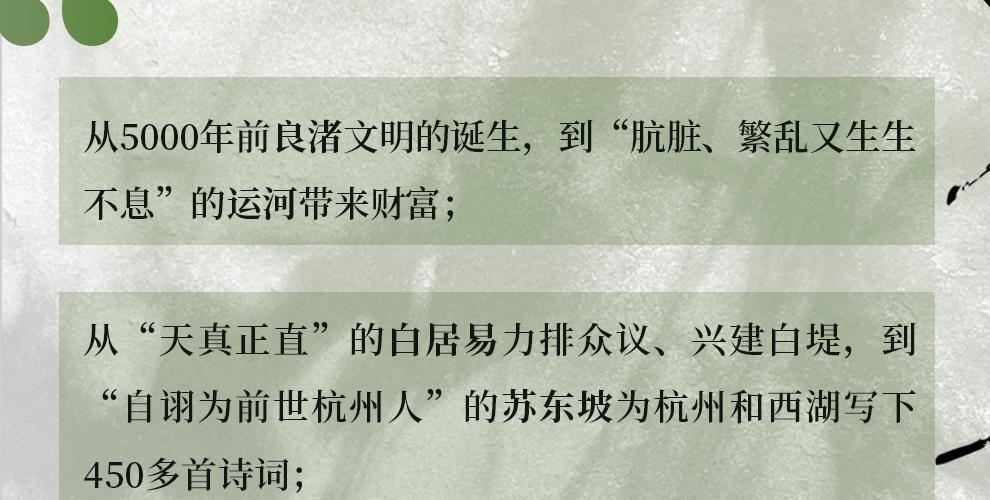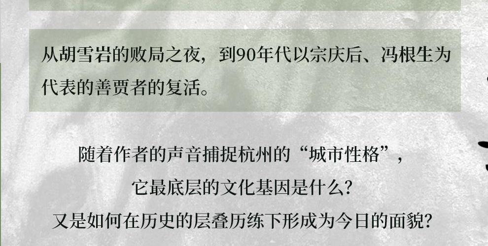 从5000年前良渚文明的诞生,到“肮脏、繁乱又生生不息”的运河带来财富; 从“天真正直”的白居易力排众议、兴建白堤,到“自诩为前世杭州人”的苏东坡为杭州和西湖写下450多首诗词; 从胡雪岩的败局之夜,到90年代以宗庆后、冯根生为代表的善贾者的复活。 随着作者的声音捕捉杭州的“城市性格”,它最底层的文化基因是什么,又是如何在历史的层叠历练下形成为今日的面貌。 对于这座城市,以及曾经或正在生活于此的人们,如果有唯一一个哲学意义上的问题,那就是:如何好好地活着?