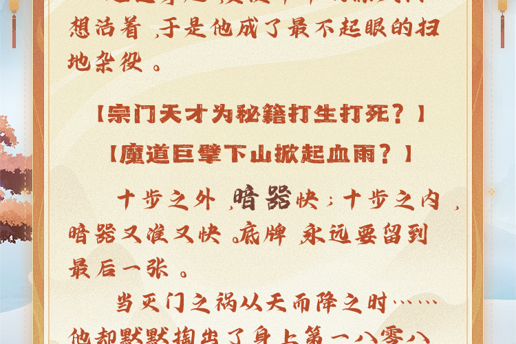 遭遇穿越,资质平平的陈庆只想活着,于是他成了最不起眼的扫地杂役。 【宗门天才为秘籍打生打死?】 【魔道巨擘下山掀起血雨?】十步之外,暗器快;十步之内,暗器又准又快。底牌,永远要留到最后一张。 当灭门之祸从天而降之时…… 他却默默掏出了身上第一八零八张底牌……