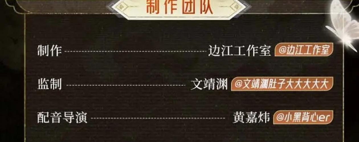 边江工作室是由知名配音演员边江创立的配音制作团队, 涉猎影视作品、动漫、游戏、广播剧、有声剧等多个领域, 参与制作《九重紫》、《玫瑰的故事》、《与凤行》、《四方馆》、 《神隐》、《烈焰》、《长相思》、《莲花楼》、《异人之下》、《你是我的荣耀》、《周生如故》、《司藤》、《陈情令》、《终极笔记》、《天宝伏妖录》、《完美世界》、《龙族》、《左手上篮》、等知名作品。 边江工作室致力以专业与热爱呈现优质声音,用情感表达对声音的信仰。