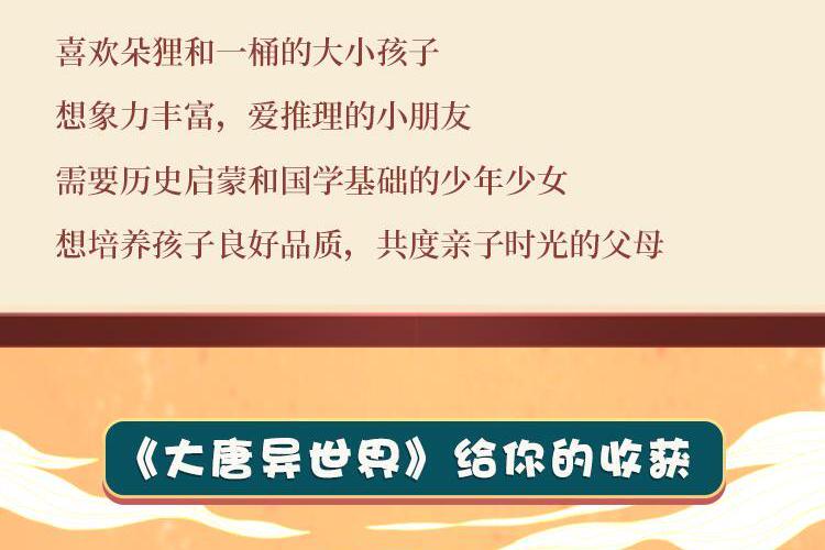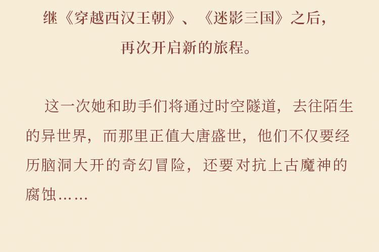 原来,平行宇宙真的存在…… 时空隧道的背后,是一个神奇的异世界,那里正值大唐盛世,却同时存在着各种可怕的怪兽。为了抓捕操纵一切的大BOSS,朵狸团队勇闯异世界,和李世民、武则天、狄仁杰等历史人物同呼吸共命运,经历唐朝著名大事件。不仅遭遇脑洞大开的奇幻冒险,还要对抗上古魔神的腐蚀……