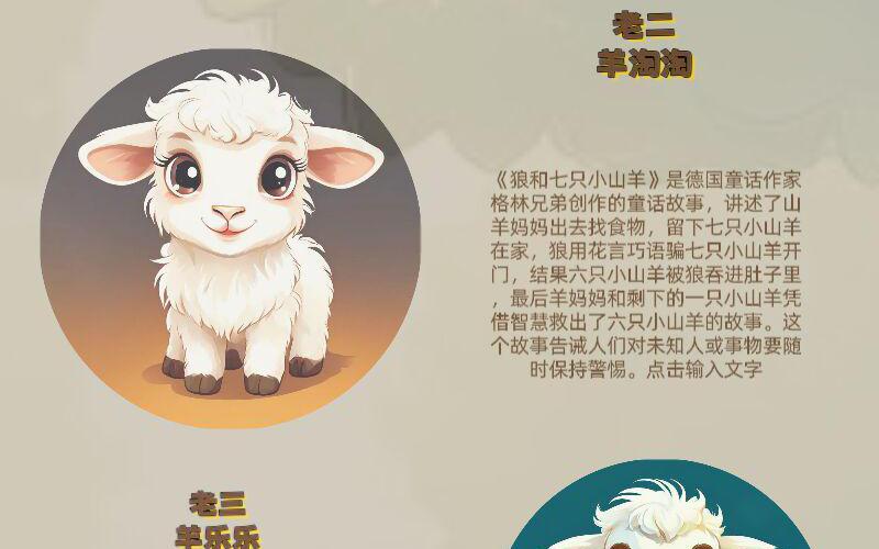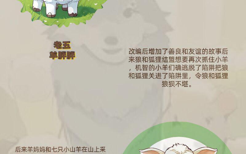 《狼和七只小山羊》是德国童话作家格林兄弟创作的童话故事,讲述了山羊妈妈出去找食物,留下七只小山羊在家,狼用花言巧语骗七只小山羊开门,结果六只小山羊被狼吞进肚子里,最后羊妈妈和剩下的一只小山羊凭借智慧救出了六只小山羊的故事。这个故事告诫人们对未知人或事物要随时保持警惕。 改编后增加了善良和友谊的故事,后来狼和狐狸结盟想要再次抓住小羊,机智的小羊们确逃脱了陷阱把狼和狐狸关进了陷阱里,令狼和狐狸狼狈不堪。