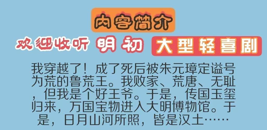我穿越成了大明鲁王,历史上死后被朱元璋定谥号为荒的鲁荒王。上有宠溺自己的慈父明太祖,下有认定自己荒唐的群臣。于是败家、荒唐、无耻,似乎是我的标签,但我却实实是个好王爷……!于是传国玉玺归来,铁甲舰出海万国宝物进入大明博物馆。于是日月山河所照,皆是汉土……!欢迎收看明初大型轻喜剧大明鲁荒王