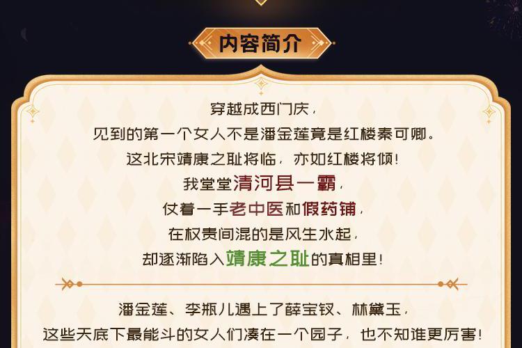 穿越成西门庆,见到的第一个女人不是潘金莲竟是红楼秦可卿。 这北宋靖康之耻将临,亦如红楼将倾! 我堂堂清河县一霸,仗着一手老中医和假药铺,在权贵间混的是风生水起,却逐渐陷入靖康之耻的真相里! 潘金莲,李瓶儿遇上了薛宝钗,林黛玉,这些天底下最能斗的女人们凑在一个园子,也不知谁更厉害! 惹恼了大官人我,又是一顿家法伺候! 有干爹蔡京撑腰,抄了贾府也是顺手的事。 我爬啊爬! 爬垮了干爹,爬塌了徽宗钦宗。 爬到最高处,只剩我一个权倾朝野! 黄袍加身! 只手拦住南侵覆灭的滚滚狼烟!
