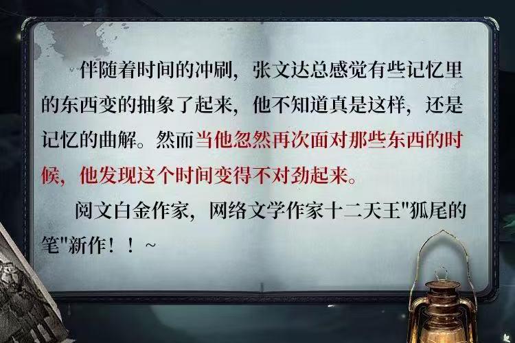 伴随着时间的冲刷,张文达总感觉有些记忆里的东西变得抽象了起来,他不知道真是这样,还是记忆的曲解。 然而当他忽然再次面对那些东西的时候,他发现这个世界变得不对劲起来。