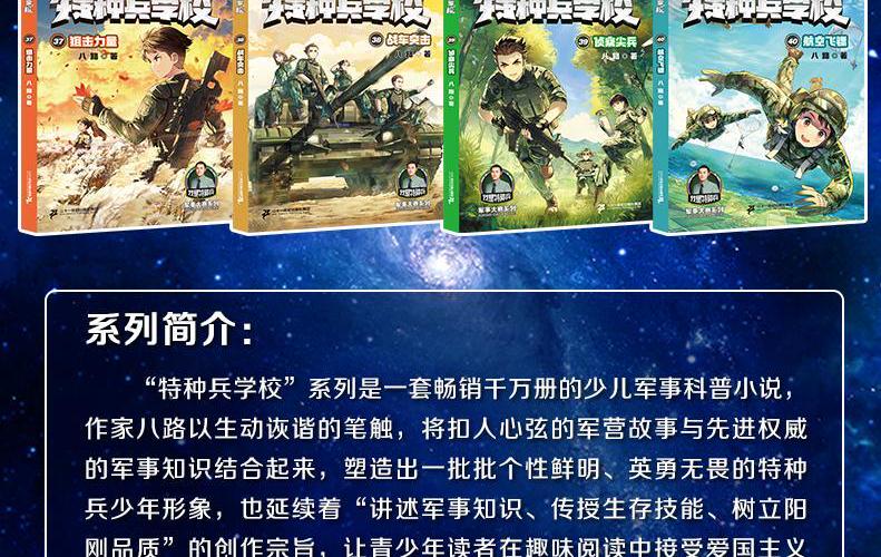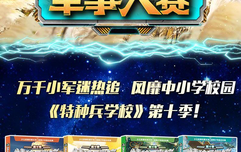 勇敢智慧有担当,小小少年本领强!功夫深不深,要看大米穿几针!战士勇不勇,泥沼下去遛一遛!兄弟处得好,鸡腿我管饱! 嗒嗒嗒!嗒嗒嗒!穿越火线,千钧一发,咱可没在怕!猛虎下山、飞禽展翅、天狼呼啸、飞鱼跃海。特种兵学校四支小队全员集结,等你来战! 特战少年,勇往直前!风靡广大校园,万千小军迷热追的“特种兵学校”第十季——军事大赛系列火爆来袭! 八路叔叔笔下的特战少年英勇无畏,战斗场景燃爆天际!剧情扣人心弦,反转连连!