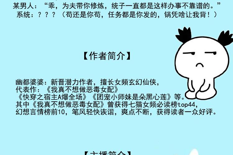 夺我法器,抢我灵兽,坏我名誉? 系统:“宿主,上,痒痒粉,倒霉符,恶毒给她看!” 毁我丹田,抢我灵剑,还教我大度? 系统:“我最恨叫我大度的人,你死不死呀!” 当灵希在恶毒女配的道路上越走越远时,终于意识到了不对。 灵希:“系统,不是说好带我修炼的吗?我真不想做恶毒女配呀!” 某男人:“乖,为夫带你修炼,统子一直都是这样办事不靠谱的。” 系统:???(苟还是你苟,任务都是你发的,锅凭啥让我背!)