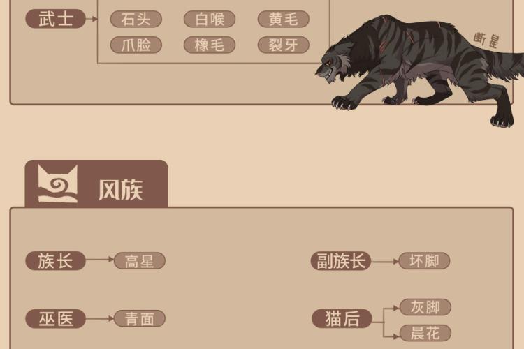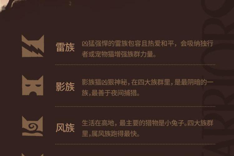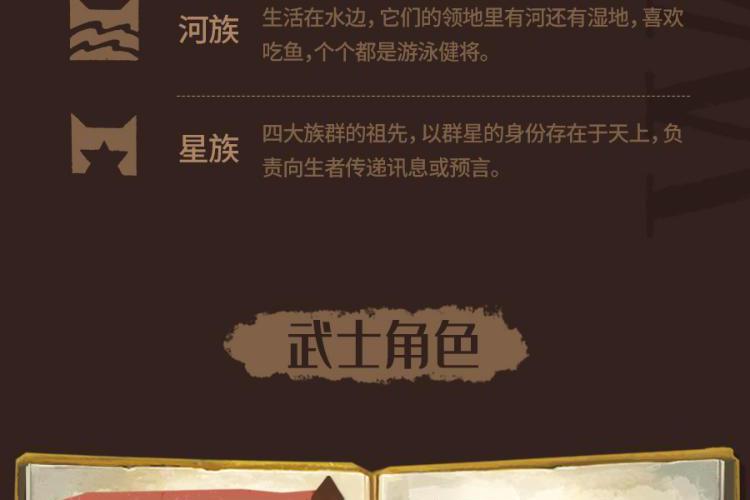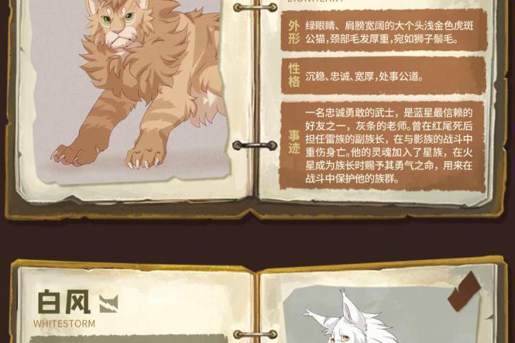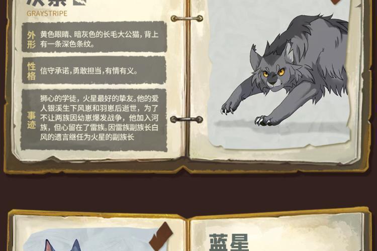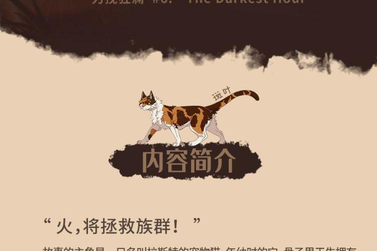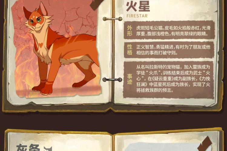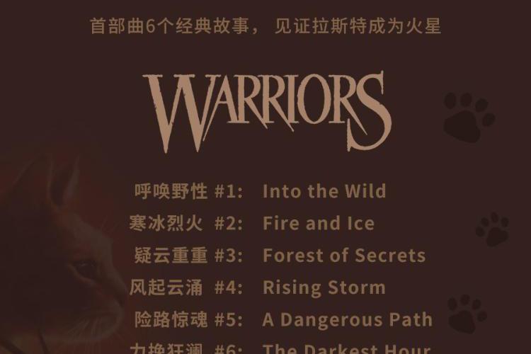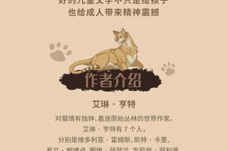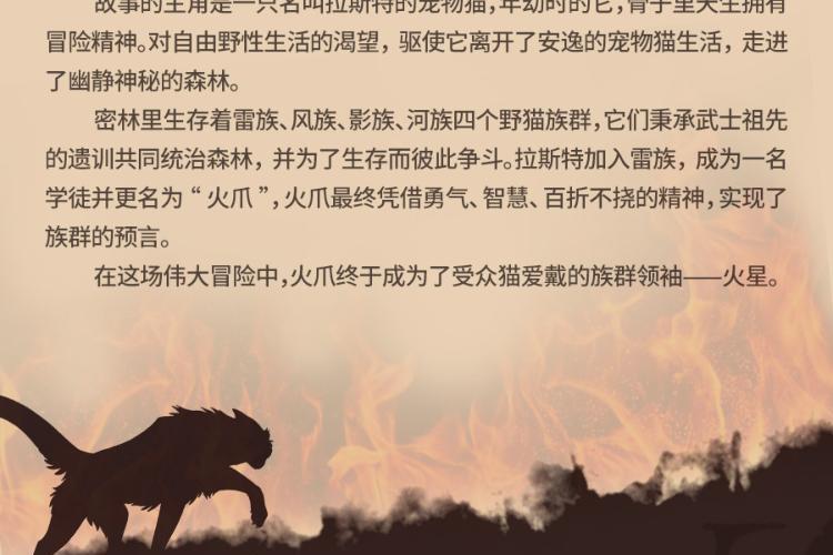 内容简介:“火,将拯救族群!”故事的主角是一只名叫拉斯特的宠物猫,年幼时的它,骨子里天生拥有冒险精神。对自由野性生活的渴望,驱使它离开了安逸的宠物猫生活,走进了幽静神秘的森林。密林里生存着雷族、风族、影族、河族四个野猫族群,它们秉承武士祖先的遗训共同统治森林,并为了生存而彼此争斗。拉斯特加入雷族,成为一名学徒,并更名为“火爪”,并最终凭借勇气、智慧、百折不挠的精神,实现了族群的预言。在这场伟大冒险中,火爪终于成为了受众猫爱戴的族群领袖——火星。 武士族群 雷族:凶猛强悍的雷族包容且热爱和平,会吸纳独行者或宠物猫增强族群力量。 影族:影族猫凶狠神秘,在四大族群里,是最阴暗的一族,最善于夜间捕猎。 风族:生活在高地,最主要的猎物是小兔子。四大族群里,属风族跑得最快。 河族:生活在水边,它们的领地里有河还有湿地,喜欢吃鱼,个个都是游泳健将。 星族:四大族群的祖先,以群星的身份存在于天上,负责向生者传递讯息或预言。