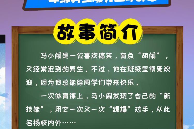 在一次体育课上,马小闹发现了自己的“新技能”,用它一次又一次“踢爆”对手,从此名扬校内外…