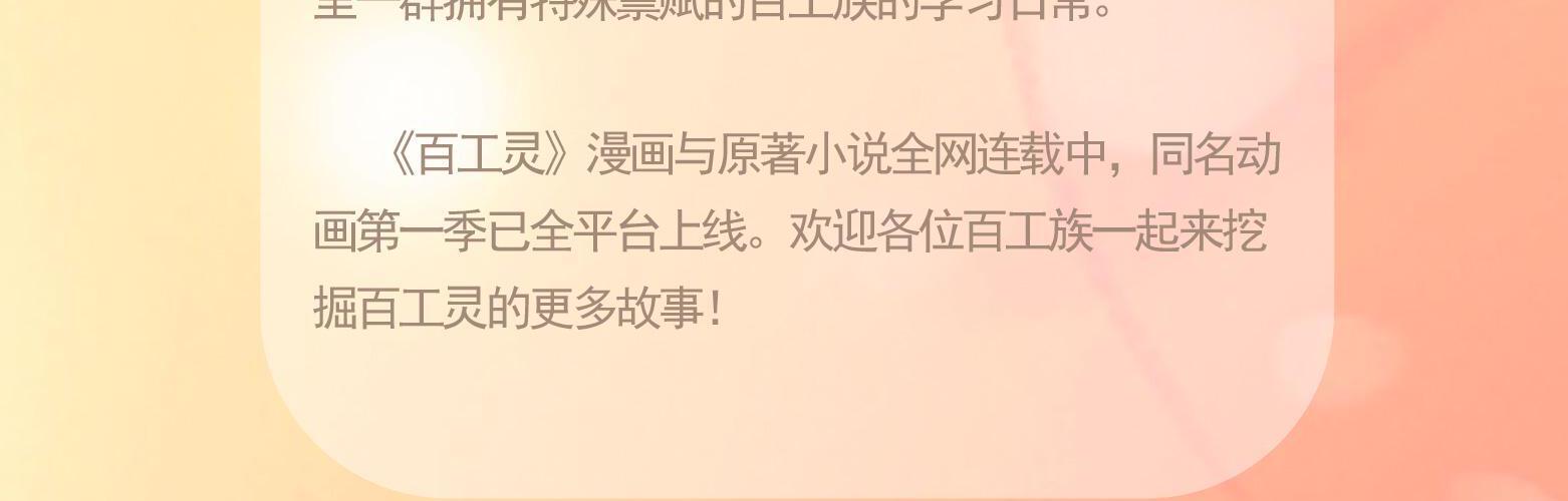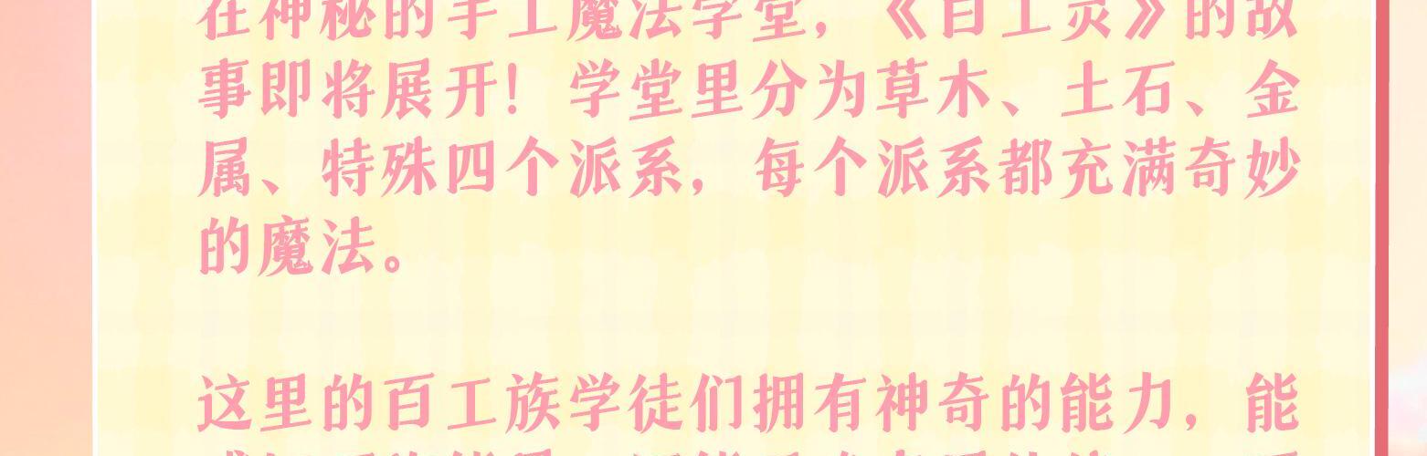 魔法手工大冒险,《百工灵》奇幻来袭! 在神秘的手工魔法学堂,《百工灵》的故事即将展开!学堂里分为草木、土石、金属、特殊四个派系,每个派系都充满奇妙的魔法。 这里的百工族学徒们拥有神奇的能力,能感知万物能量,还能召唤专属伙伴——百工灵。有了百工灵的帮助,他们就能制作出超级精美的工艺品! 故事的主角是躺平少女阿达,她被选入竞争超激烈的百工堂。原本整天只知道晒太阳、放风筝摆烂的她,能顺利通过七夕入学试,成为合格学徒吗? 平静的百工堂背后,藏着许多不为人知的秘密:神秘失踪的伙伴、困难重重的修习……