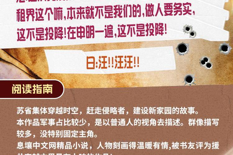 一夜间,整个江苏省回到了1937年,面对着即将登陆上海的日军,生于和平年代的他们该何去何从? 苏省人:抄家伙,马踏东京,火烧东瀛,就是干! 美:中华现在是强大,先进的象征,我们要好好学习 英:不想把租界交出去,奈何人家有真理. 德:必须与中方结交,打造新的中德友谊.! 法:这次我没头像,是英国佬先投降的,我才投降的! 租界这个嘛,本来就不是我们的,做人要务实,这不是投降!在申明一遍,这不是投降! 意:不好意思,我又跳船了. 日:汪!!汪汪!! 息壤中文网精品小说 作者:豆包 人物刻画的温暖有情,被书友评为援共穿越文里最有人味的作评!
