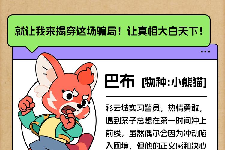 小熊猫大神探中的三位主角巴布、菲菲、小六迎来了假期,他们来到彩云城的警察局内实习。在警长的带领下,三位见习警长在工作中,用洞察与智慧,一次次戳破大反派卡皮巴巴拉博士的诈骗阴谋,保护市民免于上当受骗。 巴布三人戳穿了超人培训班、真假偶像/警官、豪华游轮等骗局,在看似合理的表象下,一次次拆穿骗子的阴谋。但后来他们发现,这些骗子似乎是有组织的、有预谋的,他们受命于同一个幕后黑手,那就是——卡皮巴巴拉博士! 真正的大战,注定在小熊猫和卡皮巴巴拉之间展开……