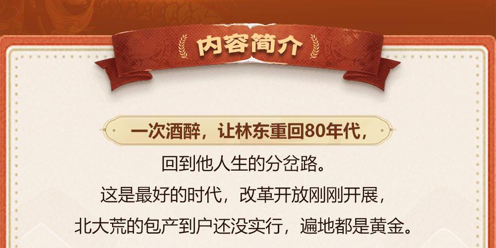 一次酒醉,让林东重回80年代,回到他人生的分岔路。这是最好的时代,改革开放刚刚开展,北大荒的包产到户还没实行,遍地都是黄金。抓住机遇,就能一飞冲天!这是林东心心念念的时代,姐姐还在,姐夫和小外甥,还把自己当成家人看。前世的种种恩怨纠葛,现在都还没有发生……这一次,林东要把握住时代机遇,照顾亲朋好友,撇开狐朋狗友。让姐姐合家欢乐,住上心心念念的大房子,成为十里八乡最被人羡慕的万元户!当然,这一切的前提,要首先解决温饱问题......