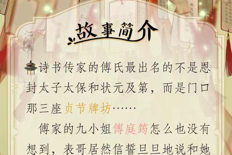 诗书传家的傅氏最出名的不是恩封太子太保和状元及第,而是门口那三座贞节牌坊。 傅家被称为福慧双全的九小姐傅庭筠怎么也没有想到,表哥居然信誓旦旦地说和她有私情,逼得她几乎走投无路…… 失之东隅,收之桑榆,原来,只要坚强地活下去,在红尘喧嚣中,她就能如花绽放,一路锦绣。