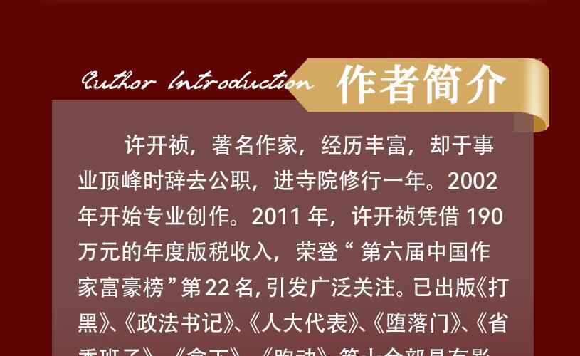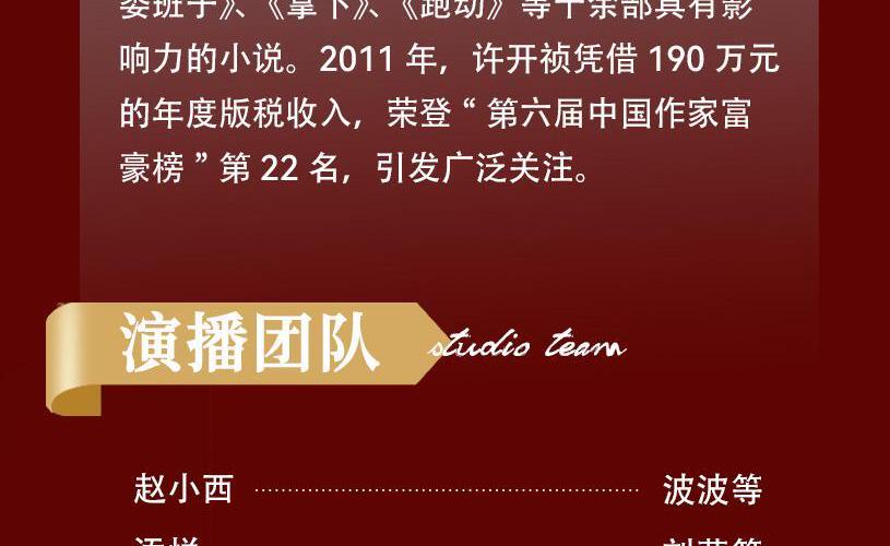 【内容简介】 西部某省,为国庆献礼的红河大桥突然垮塌,震动全省。公路桥梁局漂亮女局长司雪被疑与承包商有染,牵连其中。丈夫乐文身在作协,生性风流,带领作家赴为吴水为最大建筑商高风歌功颂德,心怀侥幸代妻受贿,落入圈套。痴情女波波,痴恋乐文,无果南下深圳,又是另一番情感纠葛,剪不断理还乱…… 【作者简介】 许开祯,著名作家,经历丰富,却于事业顶峰时辞去公职,进寺院修行一年。2002年开始专业创作。2011年,许开祯凭借190万元的年度版税收入,荣登“第六届中国作家富豪榜”第22名,引发广泛关注。已出版《打黑》、《政法书记》、《人大代表》、《堕落门》、《省委班子》、《拿下》、《跑动》等十余部具有影响力的小说。2011年,许开祯凭借190万元的年度版税收入,荣登“第六届中国作家富豪榜”第22名,引发广泛关注。 【制作团队】 出品:阅米文化 作者:许开祯 画本:瑞玲 审听:猫猫宵 美工:玉尔 演播:赵小西、添悦、曾冶、朱门酒肉、墨如归、三拾有声