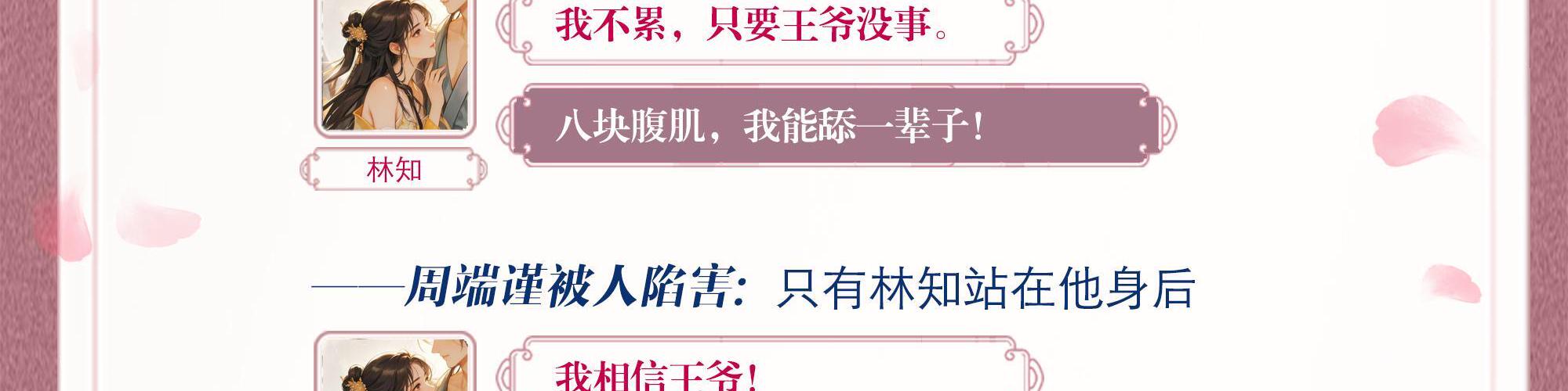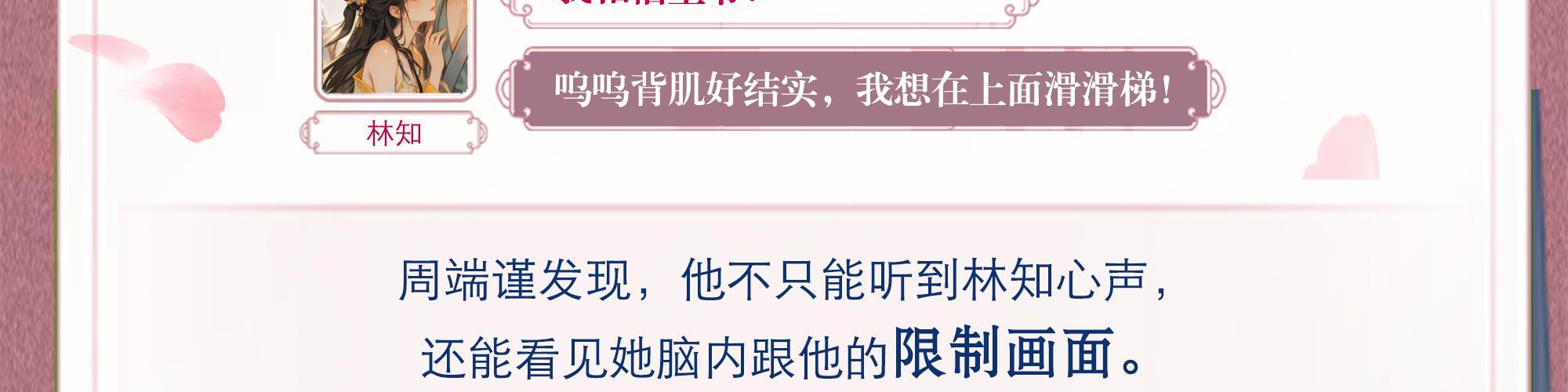 系统流逗比大黄丫头×读心术醋王反派王爷—— 林知穿成了书中的的舔狗女配。 原主为男主偷取肃王的情报,害肃王重伤残疾,只剩三个月生命,而她也会被男主推出来当替罪羊斩首示众。 为活命,林知果断卖了男主,抱紧肃王大腿,势必让他长命百岁! 生母早逝,生父不慈,继母算计,弟弟陷害。 周端谨从不信任何人,直到重伤后忽然能听到林知心声。 他遭遇刺杀,林知挺身护他身前:“王爷小心!” 【啊啊啊,摸到胸肌了,好有弹性!】 他受伤高热不退,林知为他擦身降温:“我不累,只要王爷没事。” 【八块腹肌,我能舔一辈子!】 被人陷害,只有林知站在他身后:“我相信王爷!” 【呜呜背肌好结实,我想在上面滑滑梯!】 周端谨发现,他不只能听到林知心声,还能看见她脑内跟他的限制画面。 浴池、书房、轮椅、小树林……她花样还挺多。 终于有一天,周端谨忍无可忍的从轮椅上站了起来,把林知拉进浴池。 周晋臣原本厌烦极了林知,可不知什么时候起她不再对他小心讨好。 直到有一天看到她窝在周端谨怀里,指尖轻勾他的衣襟,吻在周端谨唇角, 周晋臣忍不住去拉林知的手:“林知,我后悔了。求你,看我一眼好不好?