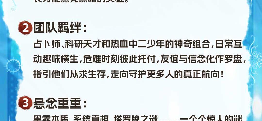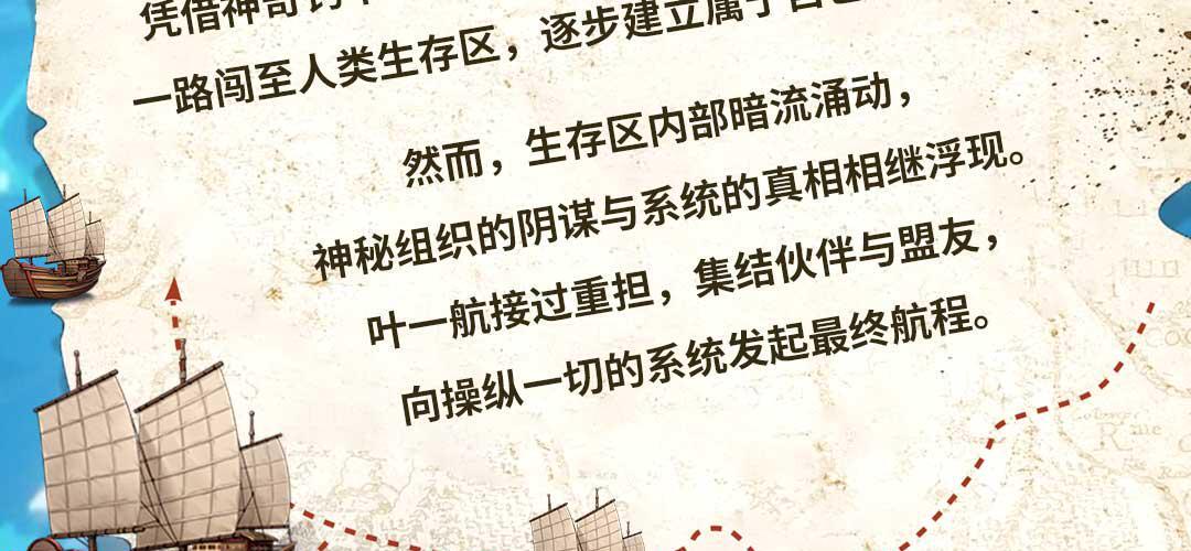 全球都被强行卷入未知系统主导的航海求生游戏之中,秩序崩塌,黑雾追袭,诡异生物横行。 每个人唯有一艘专属的船只,在无尽海洋中挣扎求生。 16岁占卜师叶一航驾驶着星轨号,与科研天才李沐云,中二少年宋英勇组成团队。 凭借神奇钓竿垄断资源、打造自给自足的生态方舟,一路闯至人类生存区,逐步建立属于自己的势力。 然而,生存区内部暗流涌动,邪教的阴谋与系统的真相相继浮现。 叶一航接过重担,集结伙伴与盟友,向操纵一切的系统发起最终航程。 这一次,他要为全人类,占卜一个自由的未来。